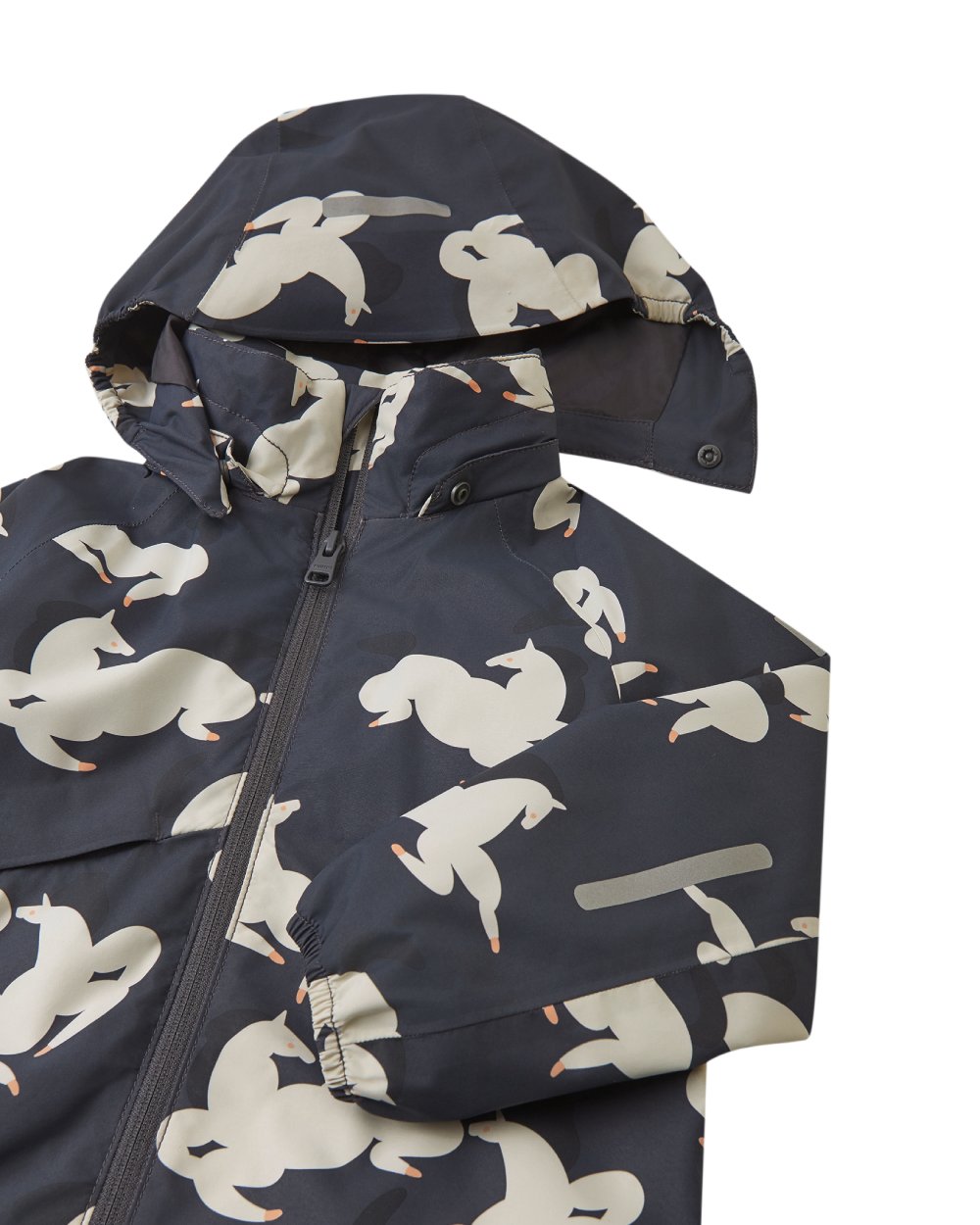 - Безопасный, съемный и регулируемый капюшон