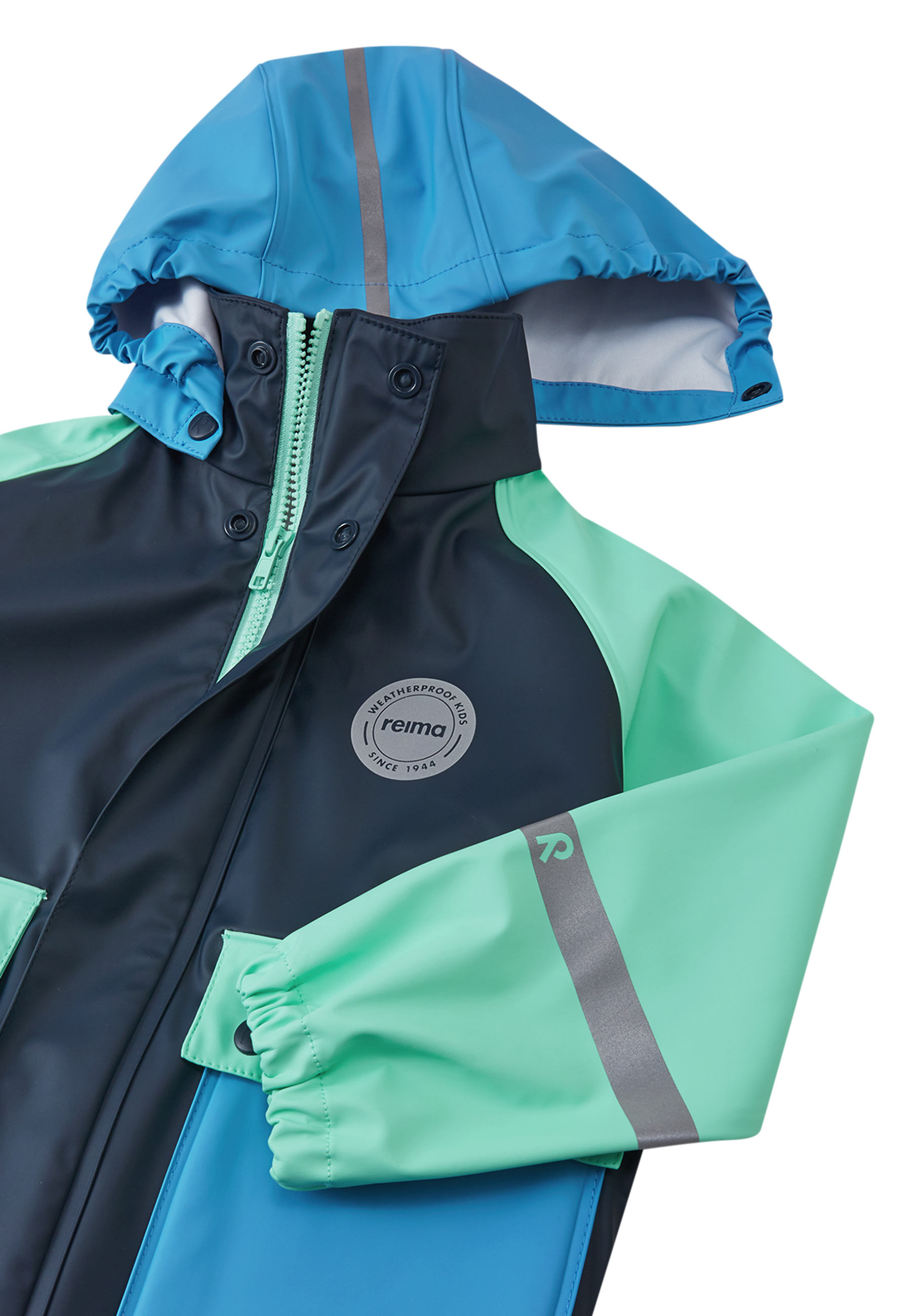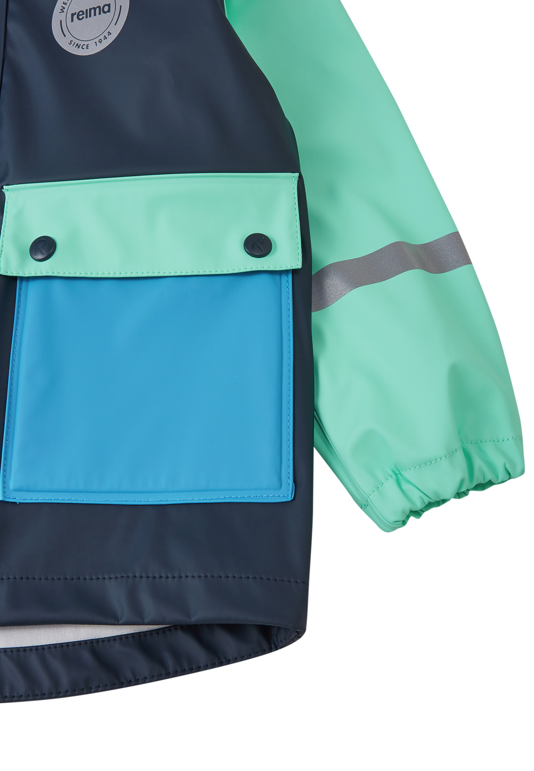 Насолоджуйтесь дощовими прогулянками разом із дитячим дощовиком Suihku. Ця модель в ретро-дизайні від Reima має вільний крій і надійно захищає від негоди. Проклеєні шви не пропускають жодної краплі, тож дитина залишається сухою та почувається комфортно навіть під час сильного дощу. Знімний капюшон забезпечує регульований захист, а еластичні манжети щільно прилягають і захищають від вітру. Місткі накладні кишені з клапанами дозволяють безпечно зберігати дрібниці, а деталі, що відбивають світло, підвищують видимість у сутінках та за поганого освітлення.