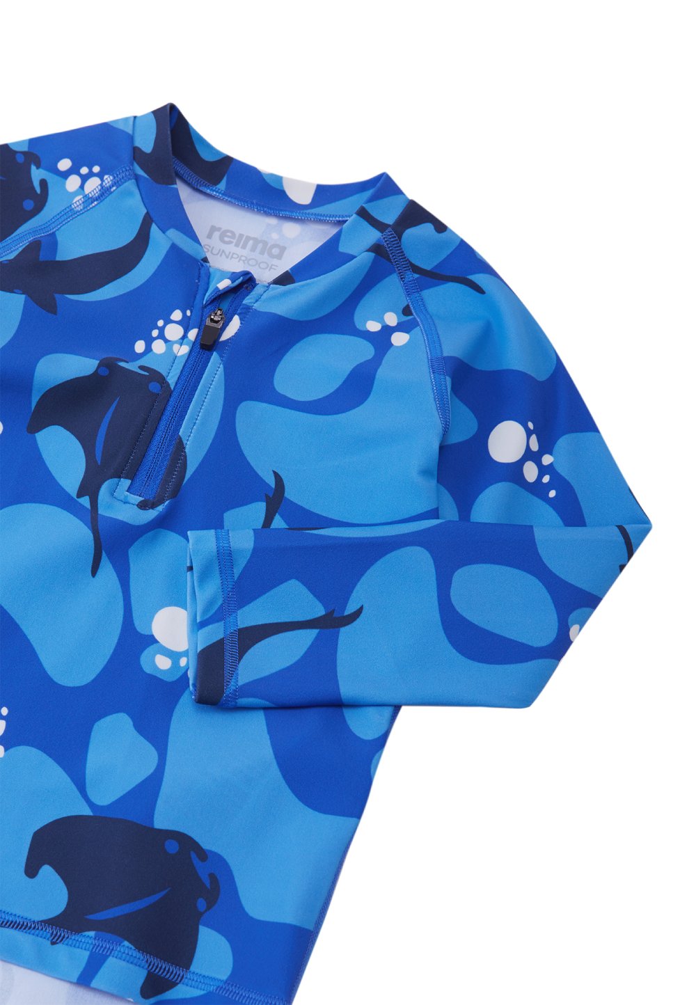 Цей лонгслів для плавання захистить вашого малюка під час веселощів на сонці та у воді. Еластичний, швидковисихаючий матеріал відводить вологу від шкіри при грі на сухій землі. Матеріал настільки тонкий та щільний, що забезпечує захист від ультрафіолету SPF 50+, що дозволяє довше грати на вулиці. Передня блискавка з напівавтоматичним замком запобігає випадковому розстібанню, а довший задній край додатково прикриває спину. Ця універсальна футболка з довгим рукавом ідеально підходить для літніх ігор на пляжі чи басейні. Не забувайте наносити сонцезахисний лосьйон на ділянки неприкритої одягом шкіри.
