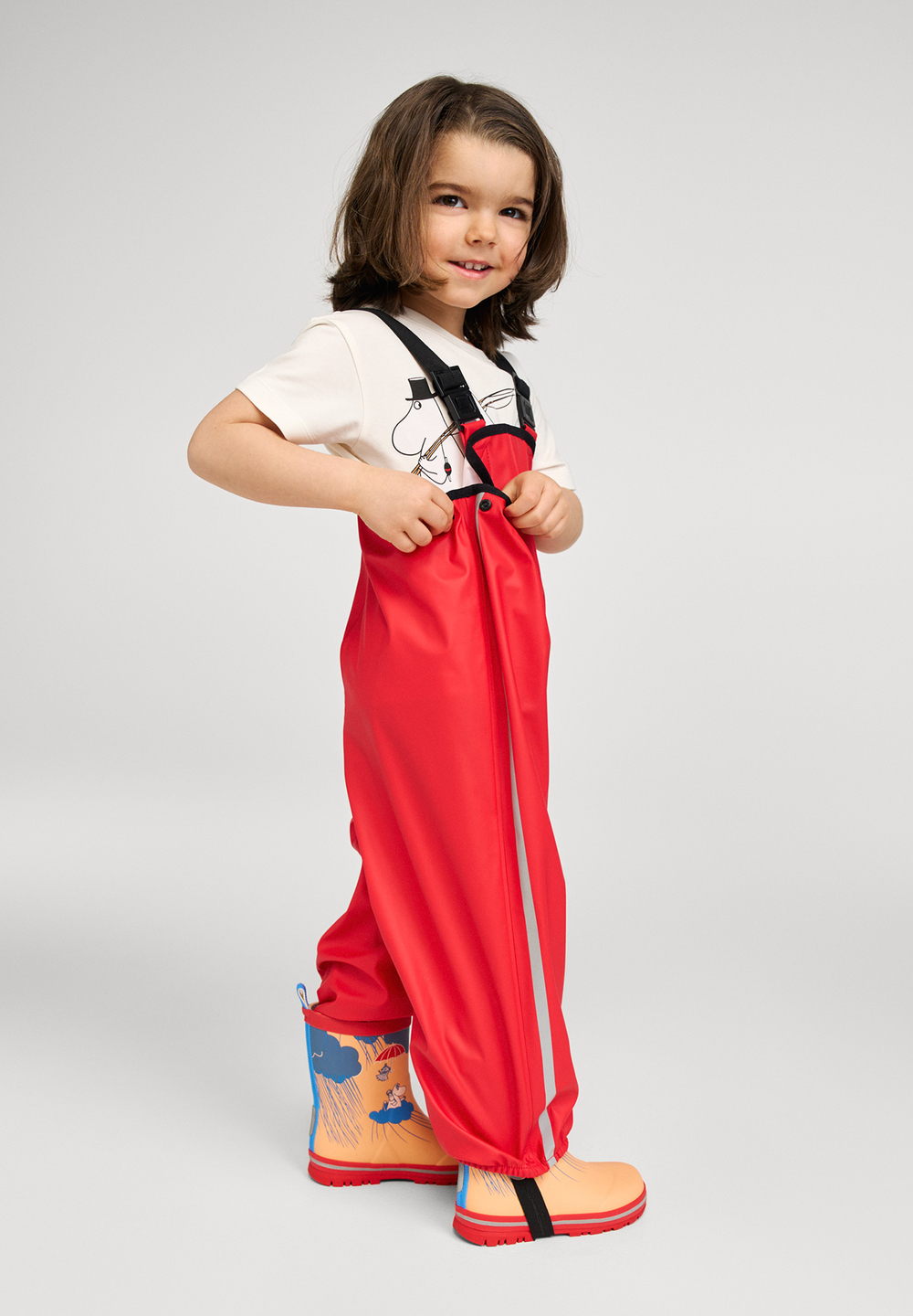 Дитячий комплект-дощовик підходить для дощової погоди ранньої осені і має тепу підкладку для захисту навіть у прохолодну погоду. Водонепроникні запаяні шви гарантують, що дитина залишається сухою навіть під проливним дощем. Знімний капюшон не тільки захищає від дощу, але й безпечний під час ігор на вулиці. Штани добре тримаються завдяки еластичним підтяжкам, які також гарантують хорошу посадку. Знімні штрипки легко надягти на гумові чоботи або водонепроникне взуття, щоб вода не попада всередину. Матеріал дощовика гнучкий, еластичній, не твердіє на холоді та не містить ПВХ.