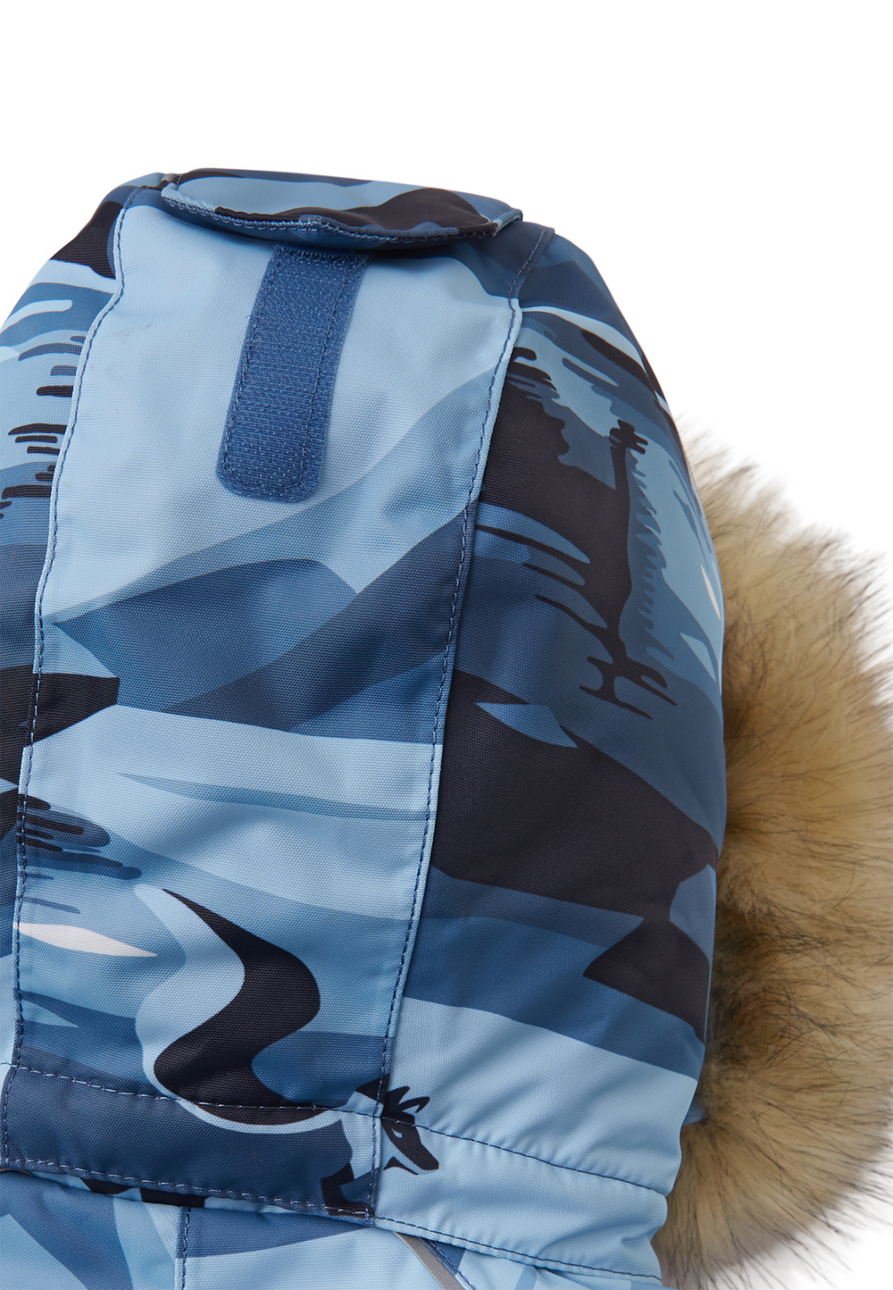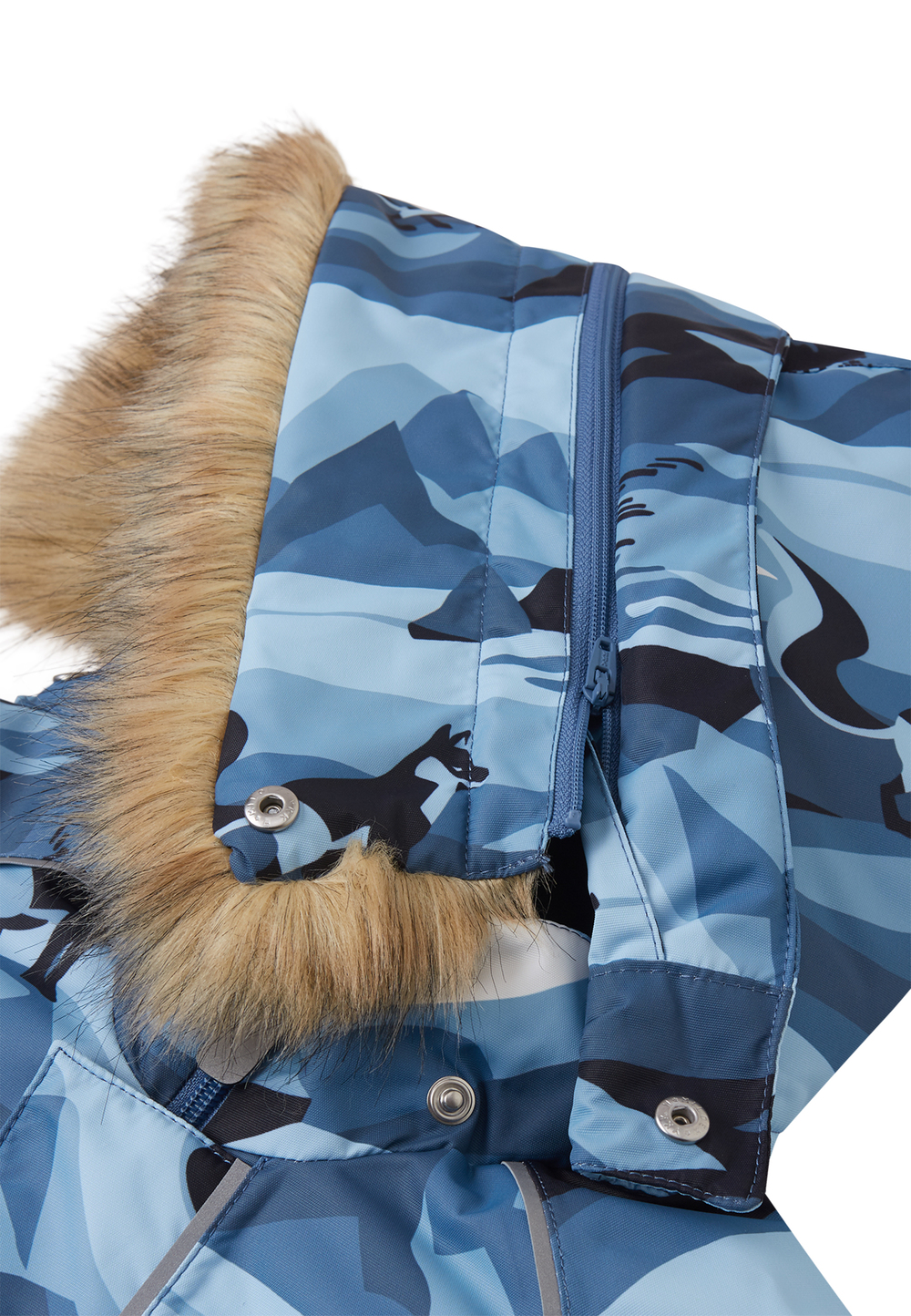 - Безопасный, съемный и регулируемый капюшон со съемной отделкой из искусственного меха